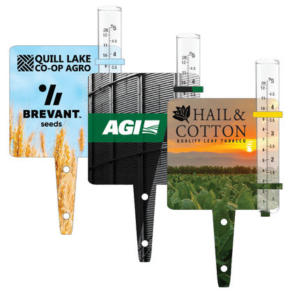 Sales Features: This one of a kind rain gauge is made from a heavy 18 gauge galvanized steel and will virtually last forever. The gauge is powder coated and can be imprinted with 4cp on both sides. Every farmer or gardener needs a rain gauge to measure the amount of rain fall at different sides of the crop field. Each metal rain gauge is individually imprinted with your company name, logo, phone number, email or fax number. Next time a farmer needs supplies he'll know who to call!